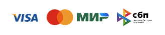 Безналичный платеж при помощи банковских карт VISA, MasterCard, МИР Российских банков и СБП.